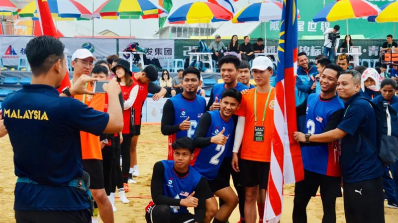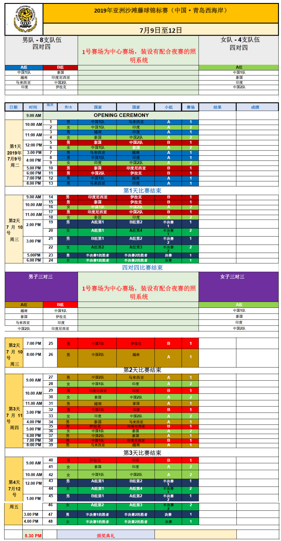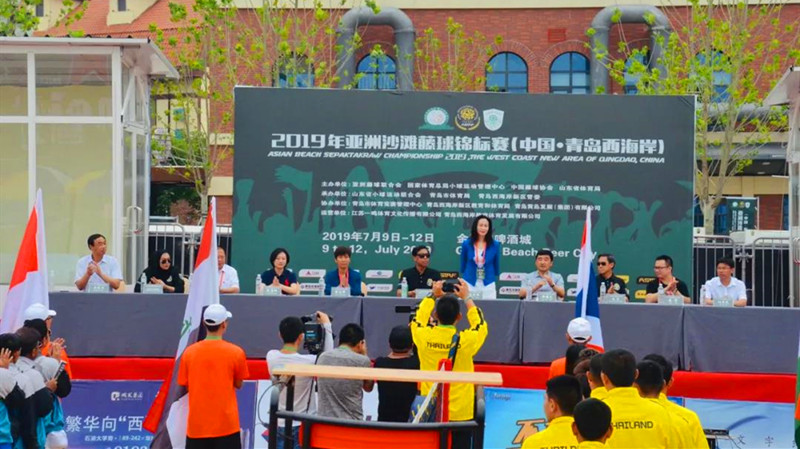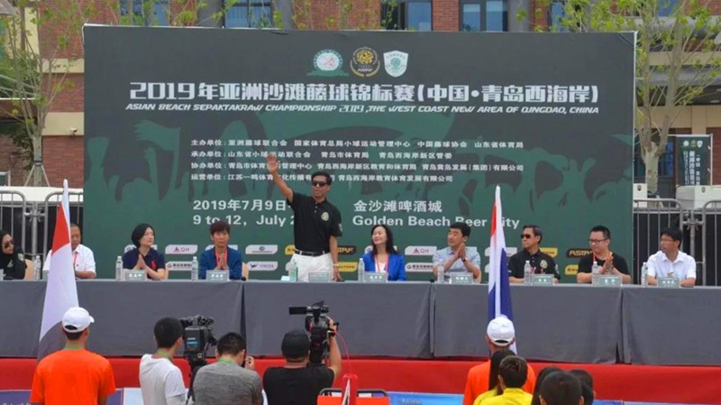 7月9日,2019亞洲沙灘藤球錦標(biāo)賽(中國·青島西海岸)在金沙灘啤酒城開賽。來自中國、越南、泰國、印度尼西亞、印度、馬來西亞、伊拉克7個(gè)國家的12支代表隊(duì)伍將為大家奉獻(xiàn)一場(chǎng)精彩絕倫的視覺盛宴。