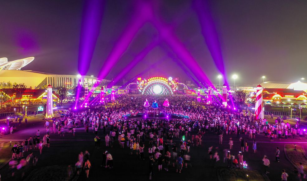 一輛輛流光溢彩的大型花車,載著身著盛裝的表演藝術(shù)家,再次為觀眾帶來絕佳的視覺盛宴;童聲合唱用天籟之音,喚起人們對大海和家鄉(xiāng)的熱愛;快閃表演《我和我的祖國》致敬祖國,為新區(qū)夢添彩;融匯各國文化特質(zhì)的藝術(shù)表演,把現(xiàn)場觀眾帶進(jìn)全球文化“大觀園”;璀璨的焰火表演一次次將閉幕式推向高潮。