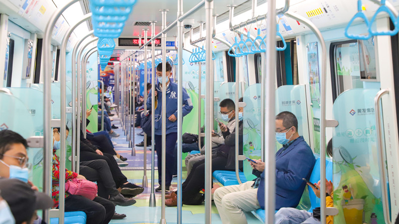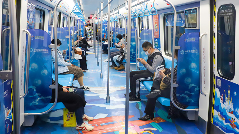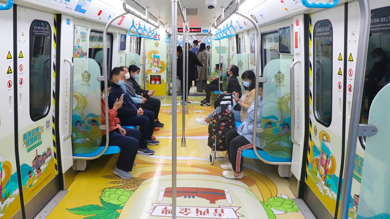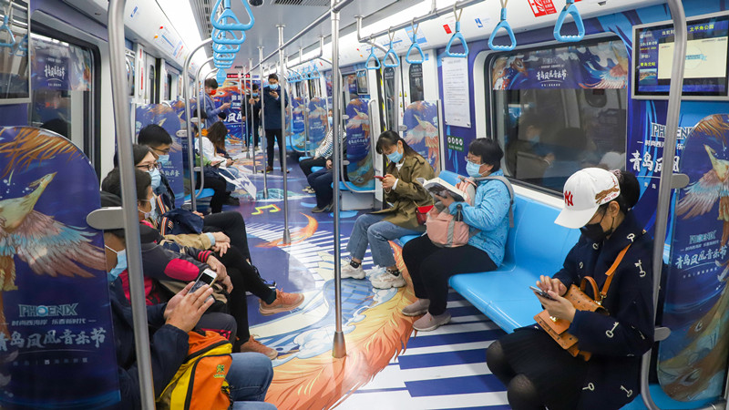 日前,“黃發(fā)集團號”地鐵3號線品牌推廣專列上線發(fā)車。一系列獨具青島西海岸新區(qū)特色的品牌創(chuàng)意布滿車廂,引來不少乘客打卡合影。