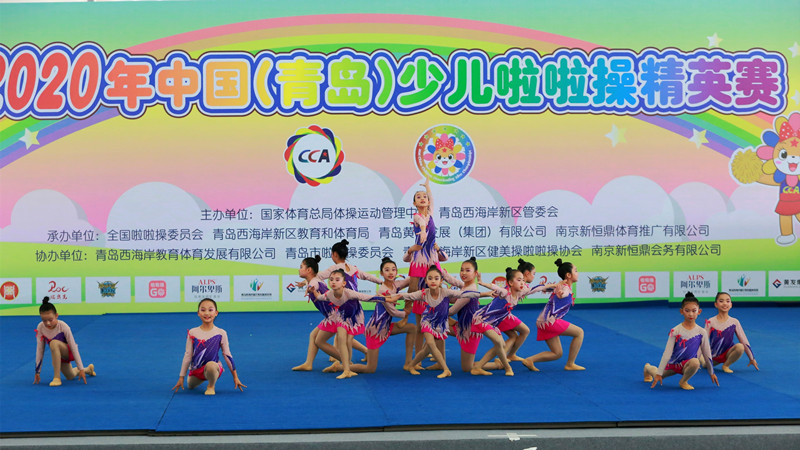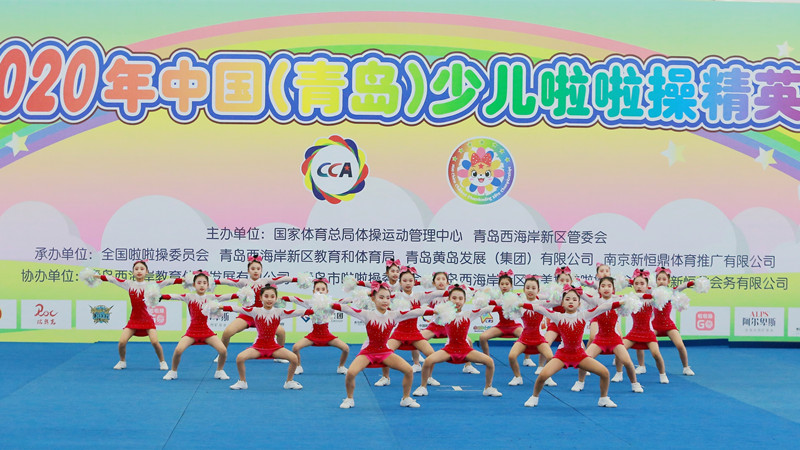 11月1日,2020年中國(青島)少兒啦啦操精英賽在青島西海岸新區(qū)金沙灘啤酒城圓滿落幕,來自全市56個單位的近1200名少兒啦啦操選手參與花球啦啦操、技巧啦啦操的規(guī)定套路和自選套路的比賽。