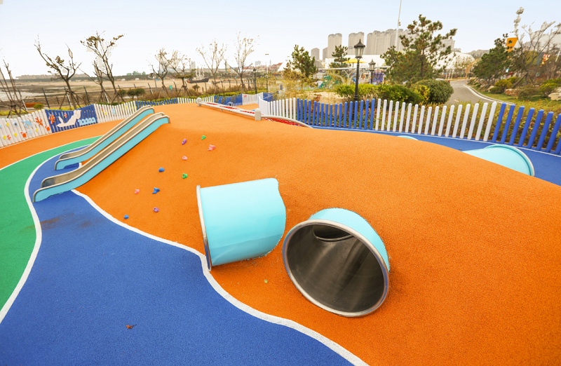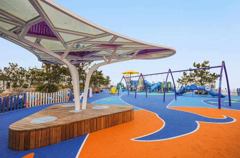 據(jù)了解,該游樂場總面積約1730平方米,位于啤酒城啤酒大道南端、愛情海灣東側,所有游樂設備都是非動力,更加安全舒適。這里不僅是孩子們的樂園,更是大人們休閑放松的好去處。設計師充分利用了海邊地理優(yōu)勢,營造了獨具特色的濱海植物景觀,是親子游玩不錯的選擇。