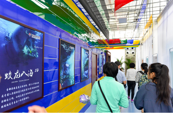 中國館展區(qū)面積3500平方米,由中國極地研究中心、國家深?;毓芾碇行?、中國船舶重工集團(tuán)、中國航天科技集團(tuán)等22家權(quán)威機(jī)構(gòu)和知名企業(yè)攜海洋科技、航天科技成果集體亮相。展會現(xiàn)場,觀眾通過國內(nèi)首次亮相的“蛟龍?zhí)?/span>”模擬操控系統(tǒng),真切體驗(yàn)到“蛟龍?zhí)?/span>”水下作業(yè)的場景;天宮二號1:1模型體驗(yàn)倉前排起長隊(duì),觀眾可身臨其境感受太空的魅力;而在5D影院,我國首部深海立體電影《蛟龍入?!?/span>,展示了奇幻的海底世界和當(dāng)前深海探測前沿成果。此外,極地科考VR體驗(yàn)、大洋科考模擬體驗(yàn)、船舶模擬駕駛、水下機(jī)器人演示等現(xiàn)場互動項(xiàng)目,也激發(fā)了現(xiàn)場觀眾的極大興趣。